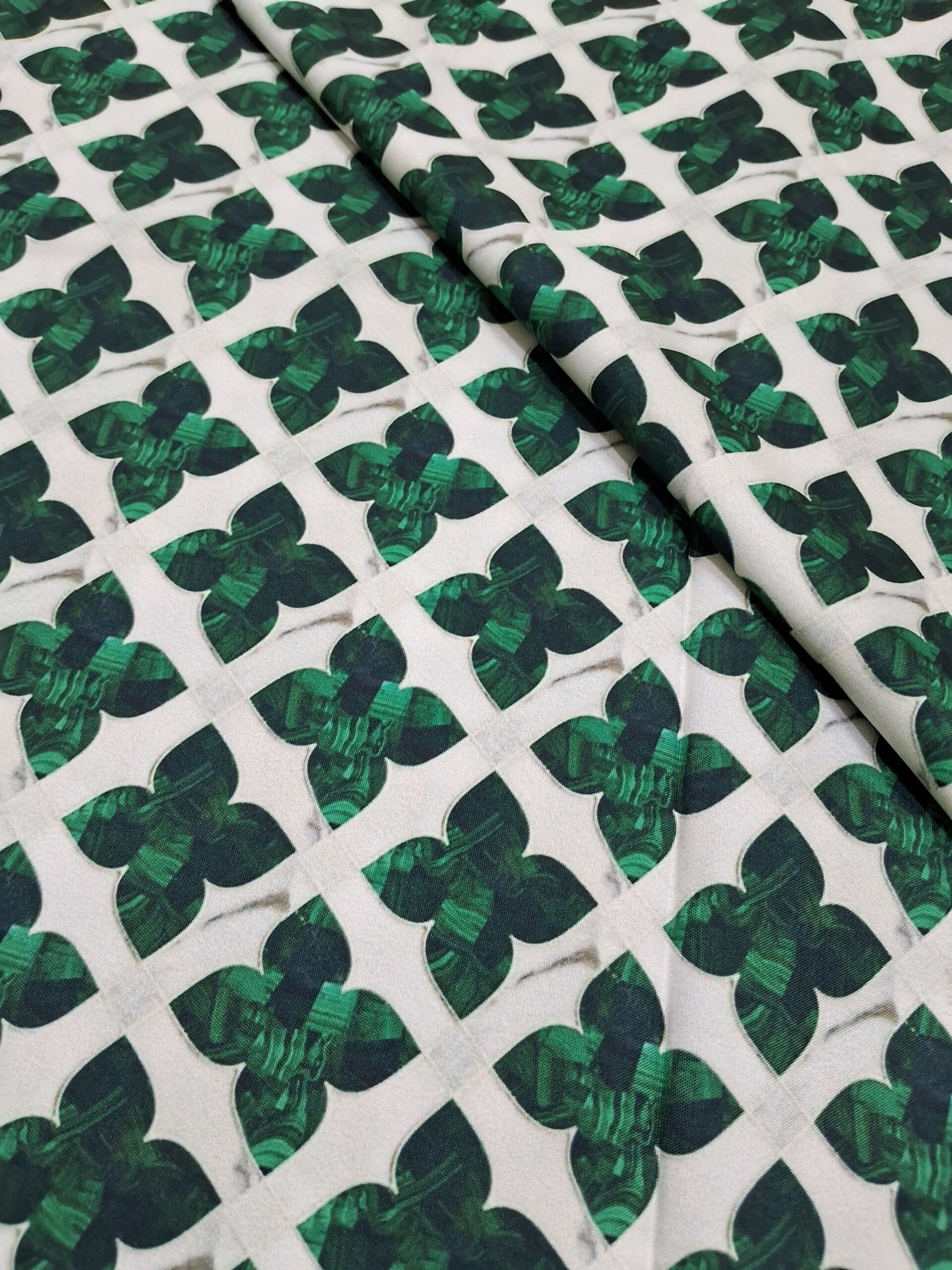 Emerald colour geometric print rayon 44″