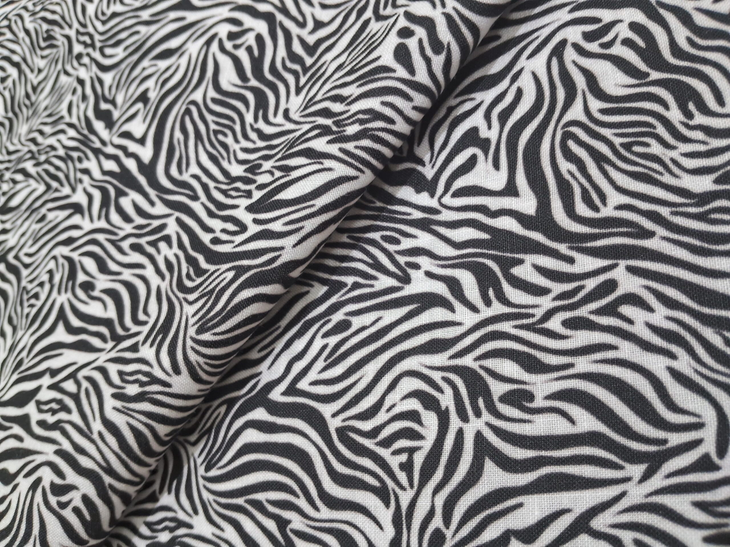 Be the first to review “Zebra print black and white digital print cotton blend fabric 36″”